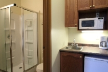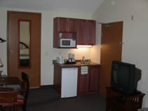 - Fully equipped kitchenette (mini-fridge, microwave, coffee maker, toaster, kettle, full set of dishes and sink)