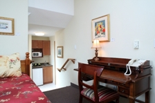 Fabulous garden view suite, first floor, queen size bed and cozy love-seat that pulls out into a twin bed, private bathroom with bathtub/shower combination. Maximum room occupancy is 3 people.