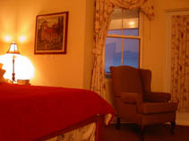 bay-style window. It has a queen size pillow-top bed and a cozy